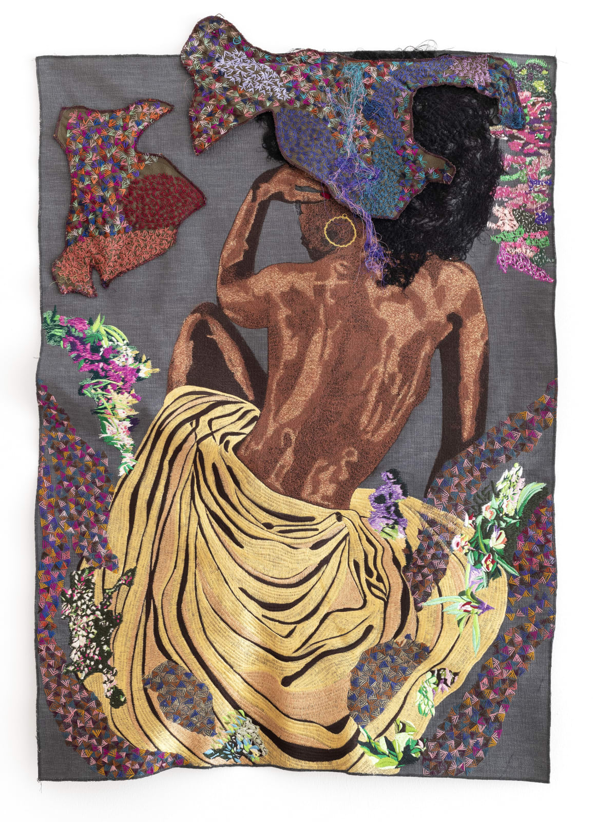 She is a multidisciplinary artist whose practise ranges from embroidery and oil painting to installation. Mafafo obtained a National Diploma in Fine Arts from the College of Cape Town in 2007 and a National Diploma in Film and Video from the Cape Peninsula University of Technology in 2016. Born in the semi-arid Kimberley in the Northern Cape of South Africa, Mafafo questions historical stereotypes around gender inequality in Africa. She primarily focuses on celebrating the black female and abstracted forms placing them in often verdant imaging, characterised by lush greenery and sensuous drapery that are far removed from the dusty mining town where she grew up. She has recently organized a group of Capetonian woman into an informal traditional embroidery society.