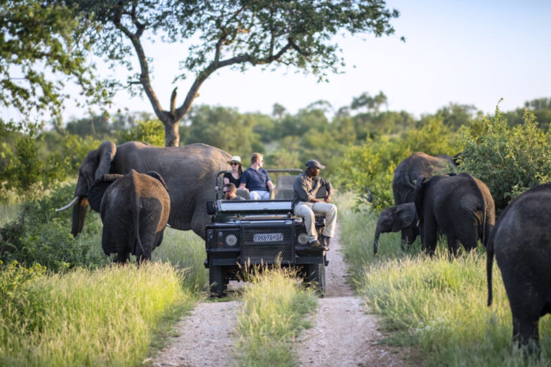 Game driving amongst a herd of elephant