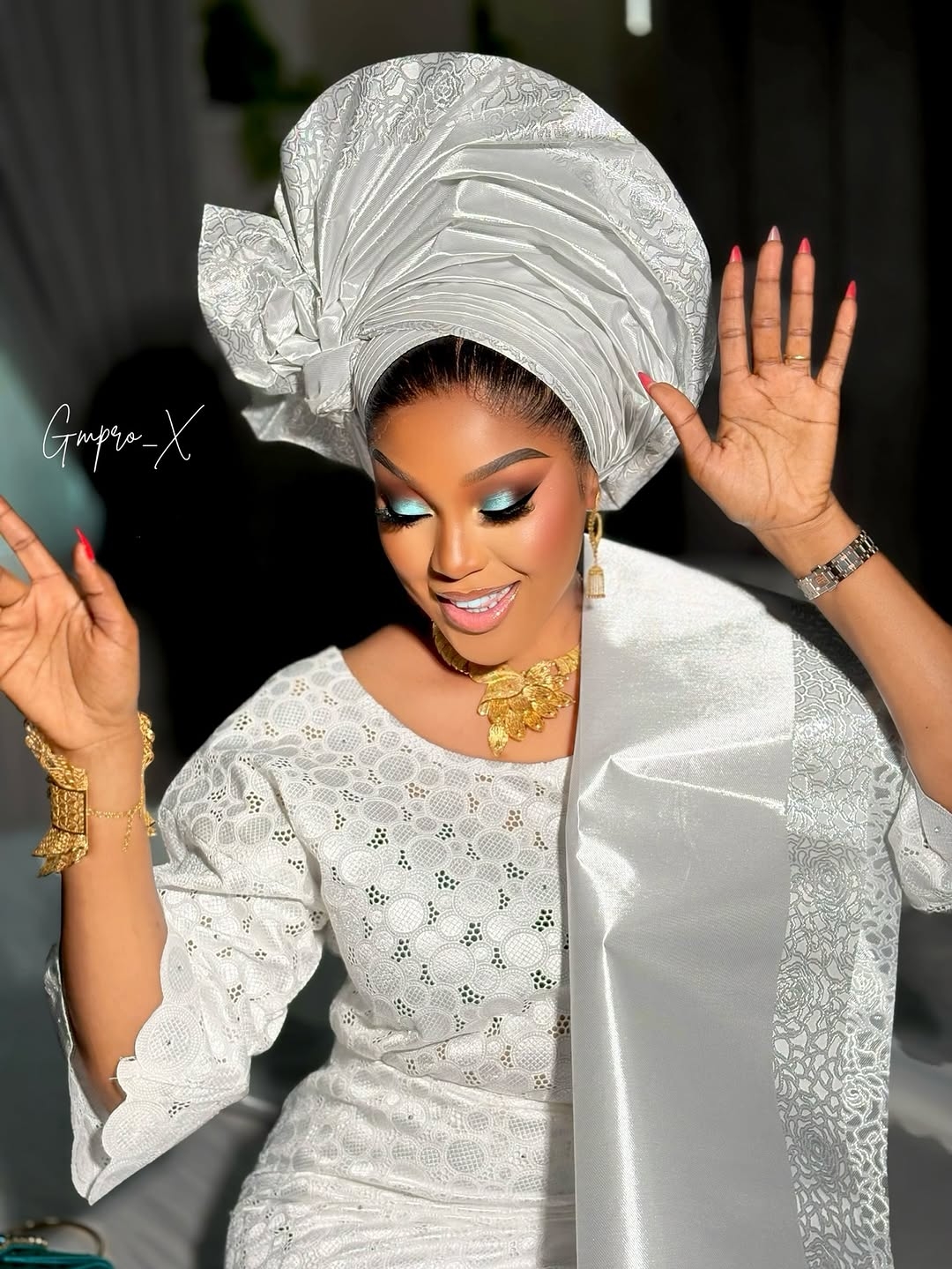 There is something special about wearing white, and this look shows it clearly. From the outfit to the accessories, everything is well put together.The white lace is clean, bright, and very elegant. It is sewn to fit her shape nicely, and the embroidery on the fabric makes it more stylish. The extra aso-oke cloth on her shoulder adds that traditional touch that makes the outfit complete.Her gele is the show stopper. It is big, neatly tied, and stands tall. The way it sits on her head makes her look like a queen ready for the party.She did not keep it plain with her accessories. The heavy gold necklace and bangles shine against the white outfit and give her that rich, classic Yoruba look. To spice it up, she carries a teal bag and wears matching teal shoes. The splash of color is unexpected but perfect. It makes the whole outfit look modern and fresh.Advertisement. Scroll to continue reading.Her makeup is calm and pretty. Her brows are neat, her lashes are long, her lips are soft and natural, and her skin glows in a way that makes her look bright. Nothing is too heavy, yet it all works together to bring out her beauty.This look is more than just dressing up. It is a full fashion moment that shows you can be traditional and still look trendy. If you want to dress for owambe and get all the attention in the right way, this style is a great example.From the details to the glow, this look is the definition of premium slay and we’re obsessed.@gmpro_x | Instagram